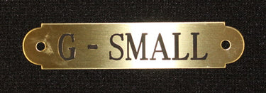 These brass or chrome plates are 3" by .5". They are perfect for dog collars, keychains and other thin leather tack. Can also be nailed or screwed into wood for labeling purposes such as a wooden saddle stand or rack. All Small G plates come with screw holes and screws. The holes can be changed based on you needs to either screw holes (screws included) or rivet holes (for going on leather, two rivets included). Plate is flexible. The plates can be engraved with up to two lines. Fonts available: Block or Roman MUSTNOT **To avoid spelling mistakes when ordering plates on-line, we will send you a confirmation email with your specifications. You reply to our confirmation email or we will process your plate order**