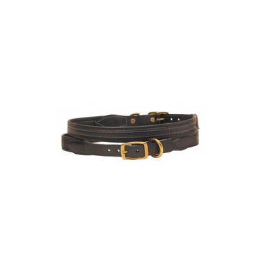 1” Milled Leather Stitched Collar Backed with soft Milled Leather Rolled to make a soft padding, leather end tabs and a strip of bridle leather overlay as trim down the center. Buckle and dee are brass.