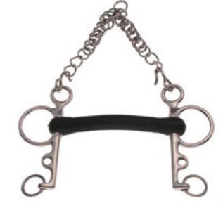 Stainless Steel bit, with a Rubber covered hard mouth. Available in sizes: 5, 5 ¼, 5 ¾, 6 .