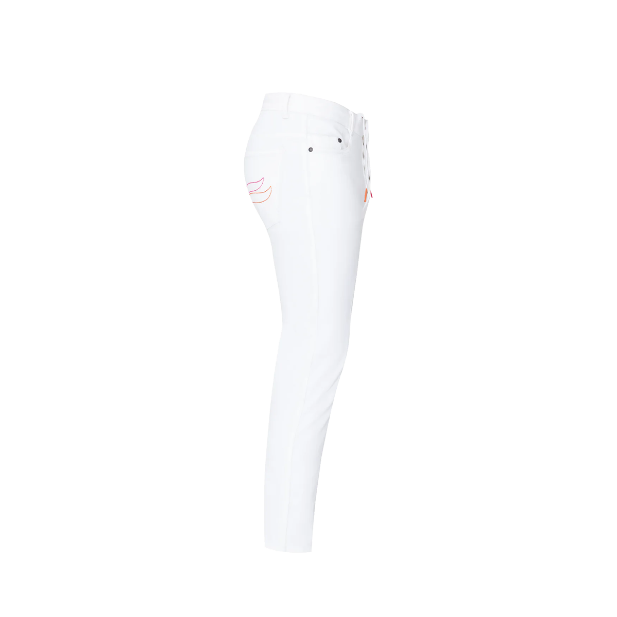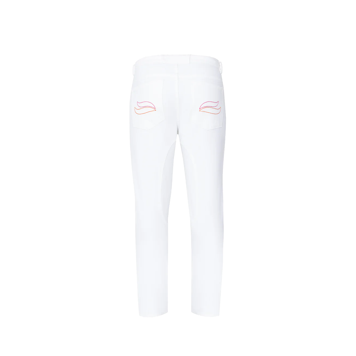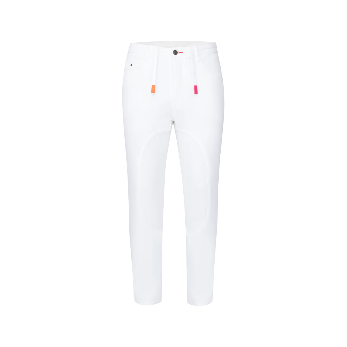 The new close contact whites. Custom All Way Stretch (AWS), homespun memory twill, classic slim fit, five pocket, button fly, saddle grip silicone, drawstring waist and customized trims. Available in men's and women's sizes. The new Casablanca jeans incorporate a silicone print for increased adherence. With the use of cutting edge fabrics, blending technology and comfort, allowing to create unique AWS (All Way Stretch) jean with freedom of movement for both on and off the polo field. One of the benefits of this technology is the shape retention which means that the jeans do not bag or sag even after repeated wash and wear. AWS Denim technology helps to make the jeans more comfortable reducing chafing thanks to improved shape memory, while looking and feeling like classic denim (without the rigidity factor).