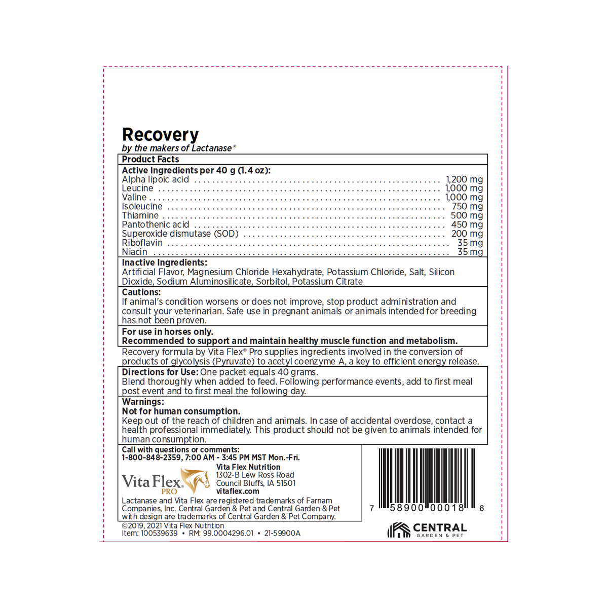 Recovery formula by Vita Flex® Pro supplies ingredients involved in the conversion of products of glycolysis (Pyruvate) to acetyl coenzyme A, a key to efficient energy release.