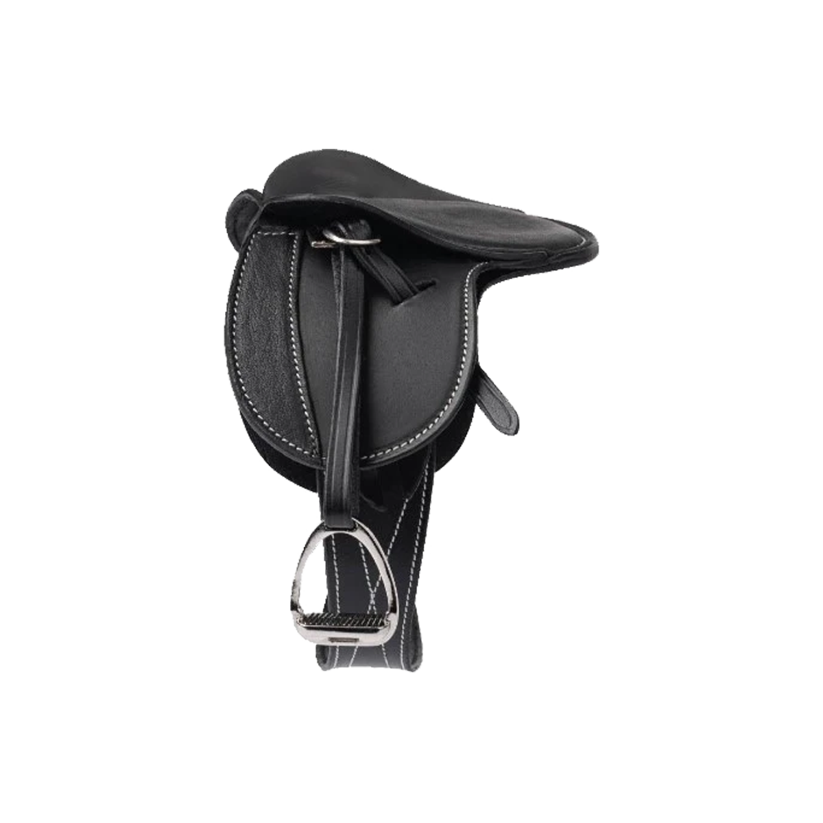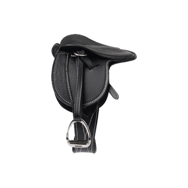 Exquisitely crafted miniature saddle in beautiful fine grain leather. Real design features including a double flap with three girth straps and buckle guards. Comes complete with detachable girth and metal stirrups which make this ideal for learning about parts of the saddle, practicing tacking up and tack cleaning. Suitable for ages 8 years