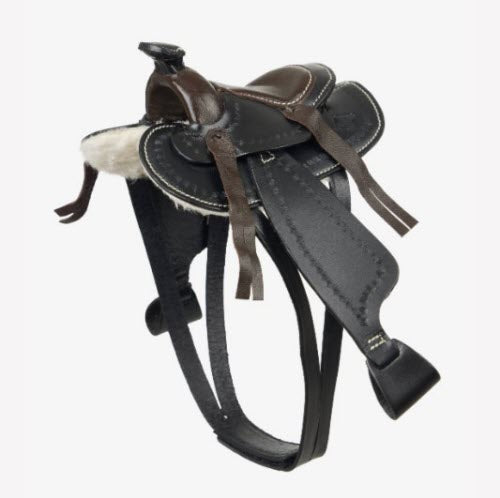This authentic miniature Western saddle comes with an authentic cantle, pommel and horn that looks like a regular-sized version – only it's made mini for LeMieux Toy Ponies. It features a fender and stirrup made from luxurious leather with faux sheepskin for extra comfort. It's the perfect must-have accessory for toy horses – and horse fans will have hours of fun learning how to practice tacking up and tack cleaning. Suitable for ages 3+