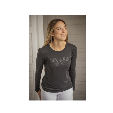 A timeless classic, this lovely long-sleeved, round-neck t-shirt stands out with its sparkling Pénélope logo on the front, topped with the "Rock & Ride" inscription in glitter. Made from a fluid and lightweight fabric, it offers natural elegance and unmatched comfort. Perfect for both your days at the stables and outings in the city, the Lovely T-shirt from the Pénélope Collections will quickly become a must-have in your wardrobe.