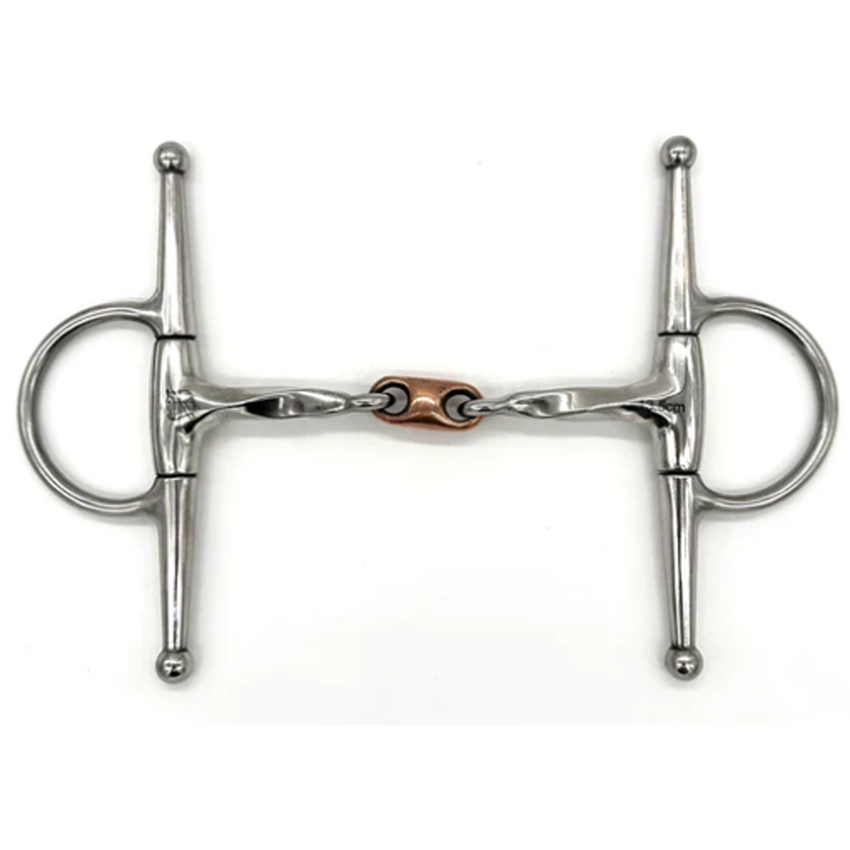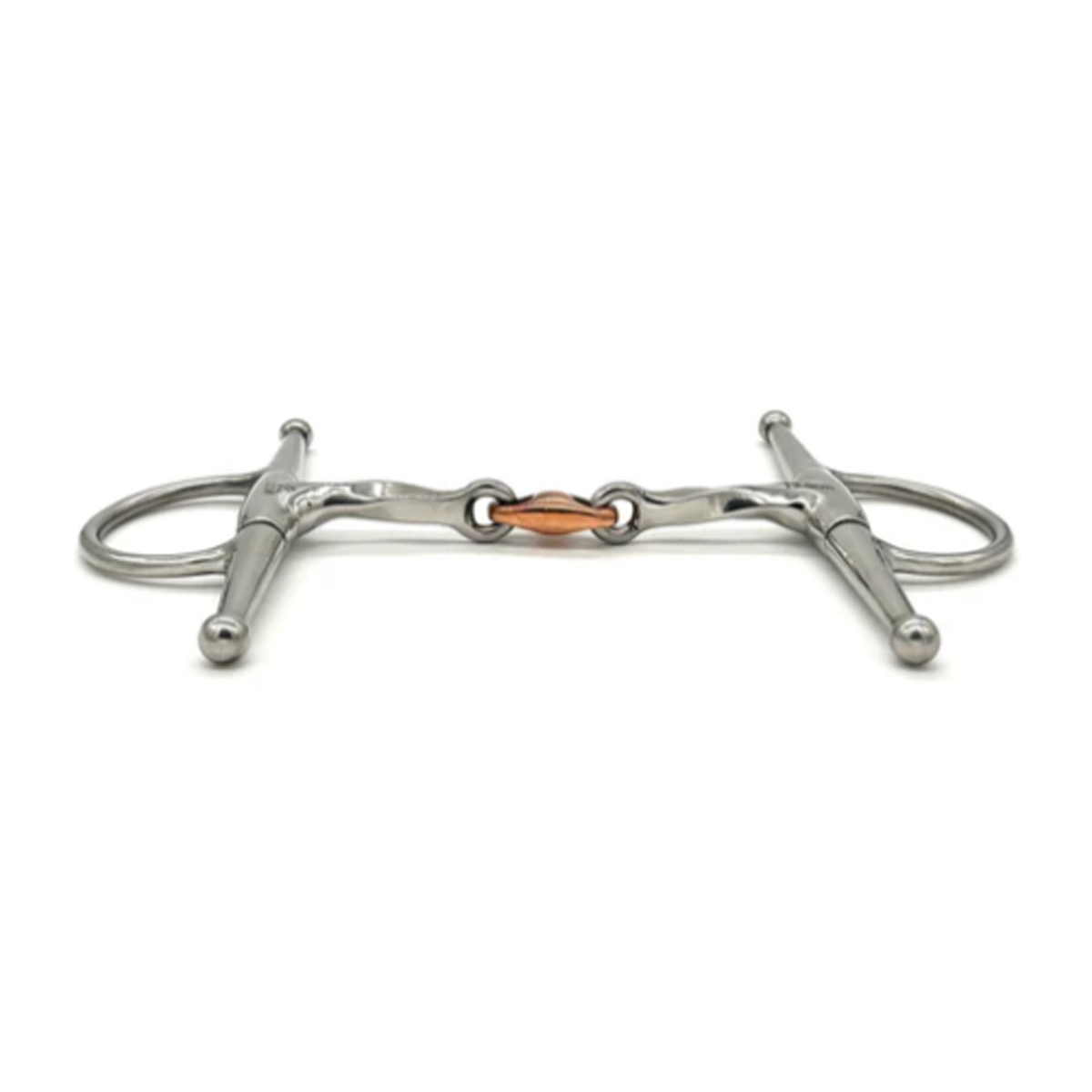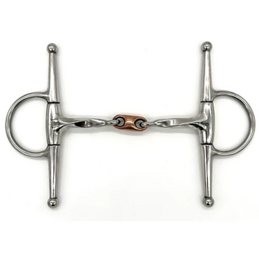 This beautifully crafted full cheek bit features three pieces including a Copper French Link. The French link provides additional comfort for sensitive horses while encouraging salivation and acceptance of the bit. The double-jointed mouthpiece avoids the nutcracker action of a single joint, preventing the bit from hitting the roof of the mouth and gives the rider independent control over each side of the mouth.